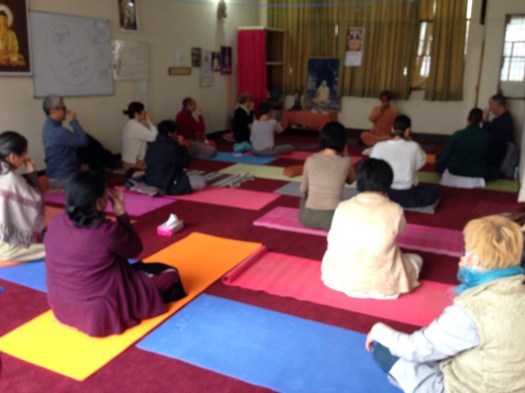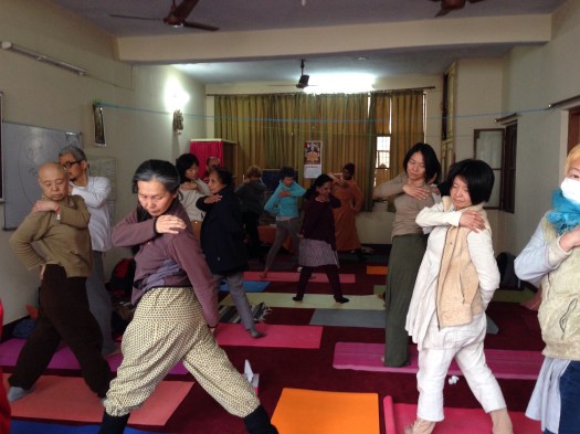 Simple asana, pranayama and a lecture. In the lecture we read the scripture “Pancadasi” . Pancadasi is a little bit difficult, but everybody has interest. Pancadasi is not only scriputures, but a practical text of yoga. We must read and practice it.